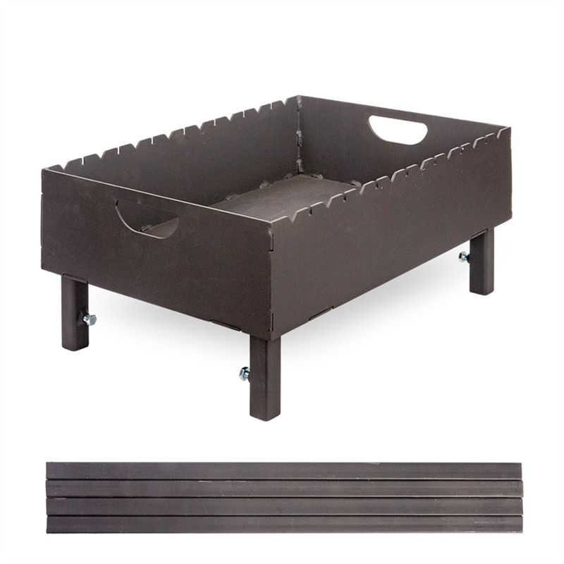 Простой, экономичный и компактный мангал подойдет для всех любителей шашлыков. Оснащен удобными ручками, чтобы его можно было переносить и съемными ножками, поэтому легко поместится в багажник.