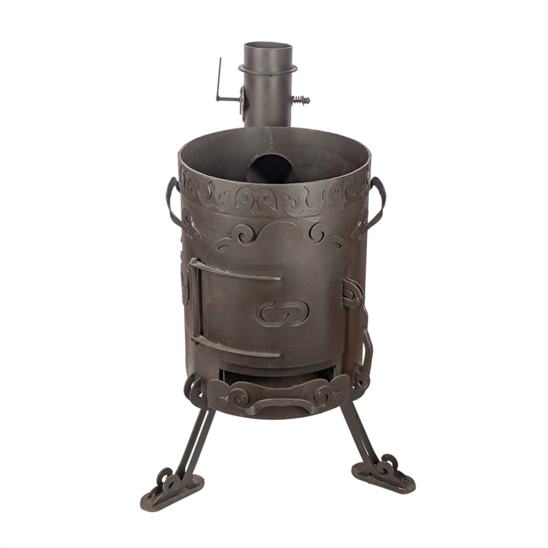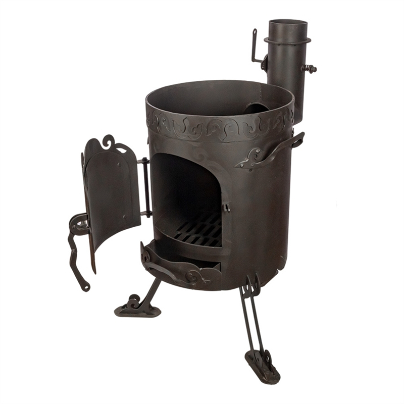 Преимущества печи: малогабаритная, мобильная, устойчивая, дверца топки и шиберная заслонка в дымоходе позволяющие регулировать силу огня в процессе готовки, благодаря чему пища в казане будет приготовлена равномерно и не пригорит. Толщина металла 4мм придает печи прочность и увеличивает срок ее службы, что практично и позволяет долгое время ею пользоваться. Толщина колосника 8 мм. Дымоход 10см.