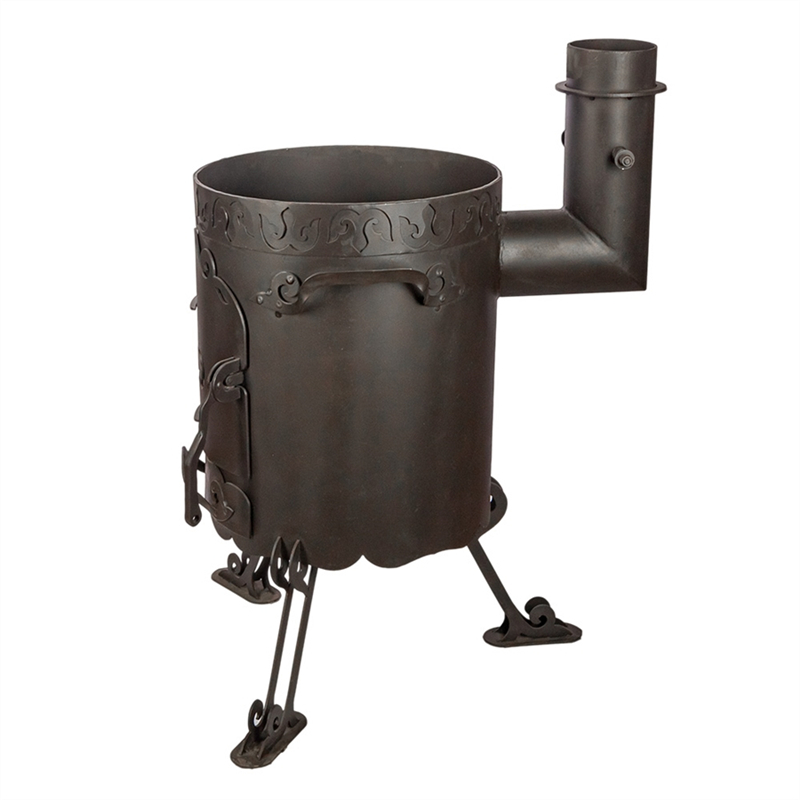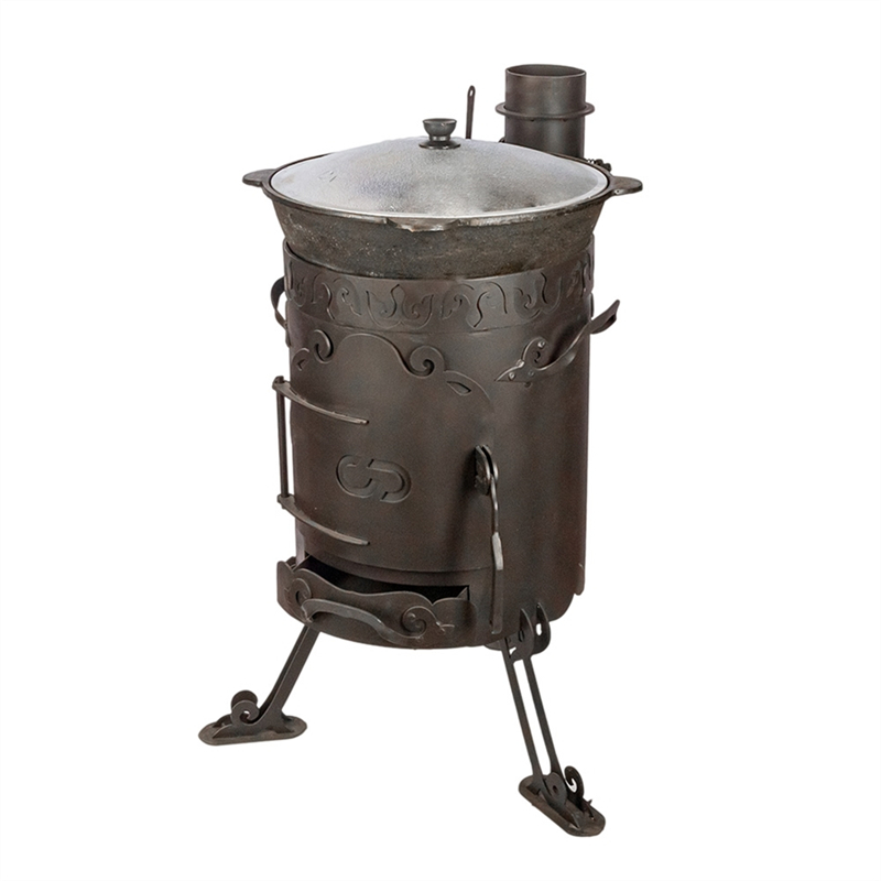 Преимущества печи: малогабаритная, мобильная, устойчивая, дверца топки и шиберная заслонка в дымоходе позволяющие регулировать силу огня в процессе готовки, благодаря чему пища в казане будет приготовлена равномерно и не пригорит. Толщина металла 4мм придает печи прочность и увеличивает срок ее службы, что практично и позволяет долгое время ею пользоваться. Толщина колосника 8 мм. Дымоход 10см.