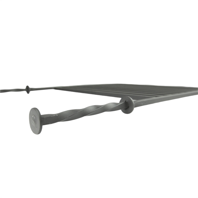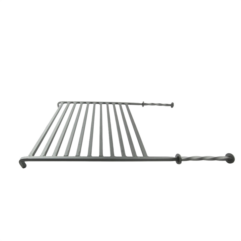 Изготовлена из металлического прутка толщиной 10мм (1 см). Покрыта эмалью термостойкой черного цвета "Certa". Удобные ручки позволяют устанавливать решетку и передвигать её на мангале и не обжечься. Ручки не нагреваются.