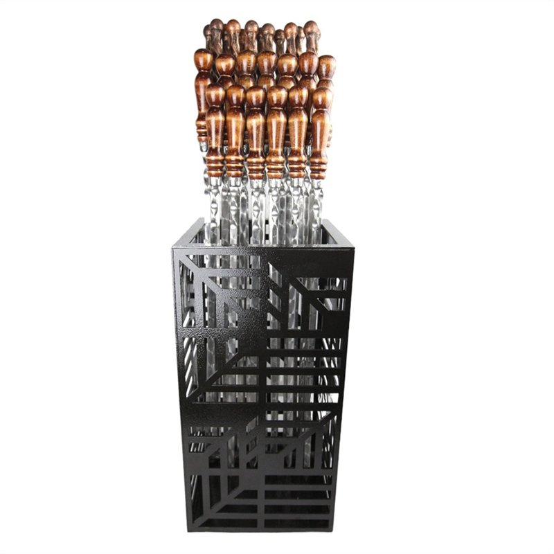 Практичный аксессуар для мангальной зоны. Отлично впишется в интерьер в стиле лофт. Подставка под шампуры решит вопрос хранения шампуров, которые всегда будут под рукой. Массивная шампурница "Электра" вмещает до 100 шампуров. В ней устойчиво размещаются шампуры с рабочей поверхностью лезвия до 55см и общей длиной с рукоятью 80см. Сталь толщиной - 3мм. Ширина отверстия по внутреннему краю - 21 см. Окрашена молотковой краской по металлу. Подставка под шампуры - практичный и прекрасный подарок для любителей готовить дымные блюда!
