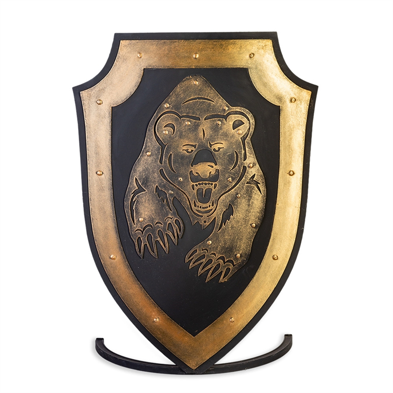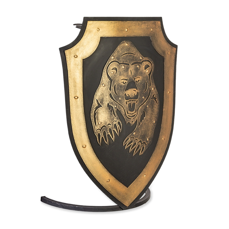 Подставка под шампуры и каминные принадлежности в виде щита.